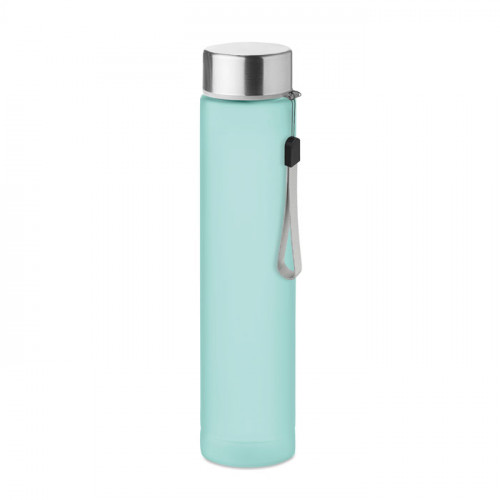 Фляга для питья с матированным покрытием. Небольшой объем (300 мл) этой бутылки позволит взять ее с собой в путешествие. Изготовлена из полупрозрачного пластика, крышка из глянцевого пластика с текстильной петлей для крепления.