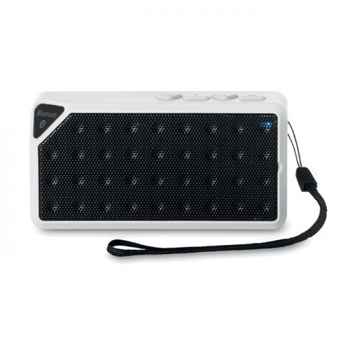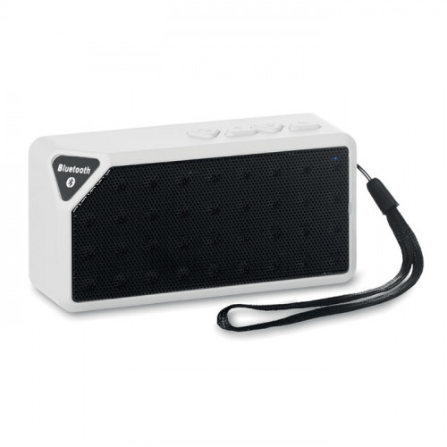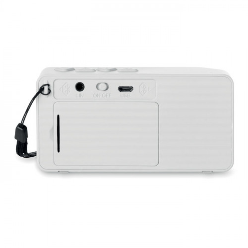 Прямоугольная Bluetooth колонка и FM радио в пластиковом корпусе. кабель AUX/ USB. Опция ответа на зонок. Батарейка включена. Встроенный аккумулятор. Кабель AUX/ USB.